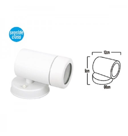 Σποτ Φωτιστικό Τοίχου, σε μοντέρνο στυλ, ιδανικό για παραθαλάσσιους χώρους, ξενοδοχεία, εστιατόρια, ενοικιαζόμενα δωμάτια, νησιά, σε λευκό, ασημί ή μαύρο. Διαθέτει αντηλιακή προστασία, έχει μεγάλη αντοχή και είναι κατάλληλο για υφάλμυρο περιβάλλον.