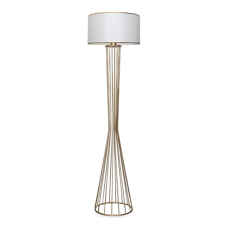 Φωτιστικό δαπέδου Clarke Megapap μέταλλο/ύφασμα χρώμα χρυσό/λευκό 38x21x155εκ.