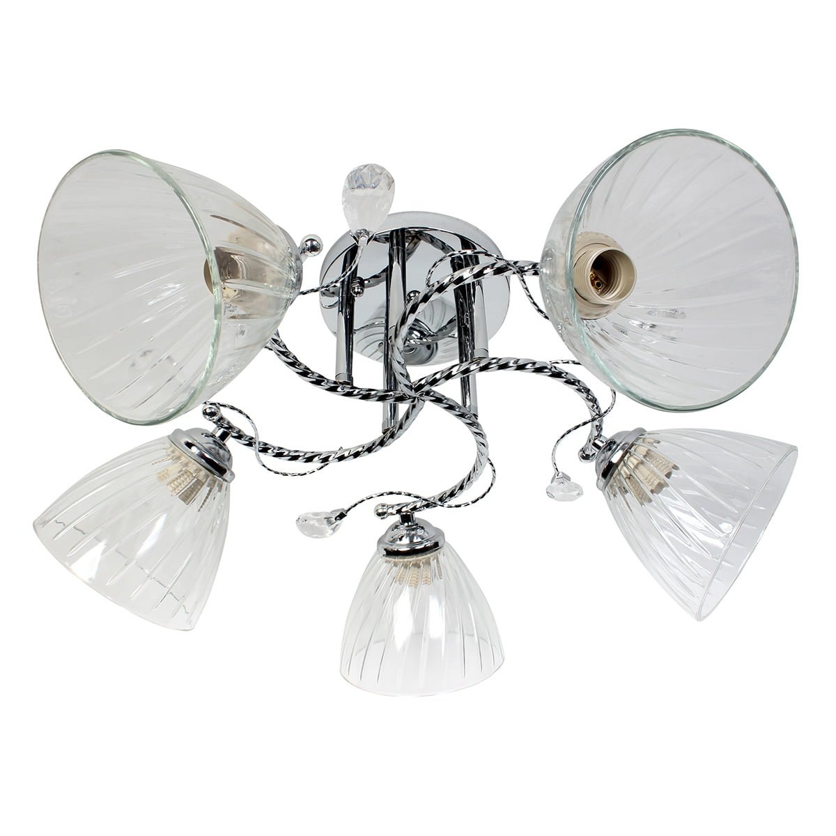 Φωτιστικό οροφής 5 Χ Ε27 Φ56Χ25 εκ. χρώμιο με γυαλιά και ακρυλικά διακοσμητικά.