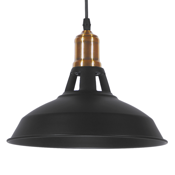 GloboStar® ANER 01073 Vintage Industrial Κρεμαστό Φωτιστικό Οροφής Μονόφωτο Μαύρο Μεταλλικό Καμπάνα Φ28 x Y17cm