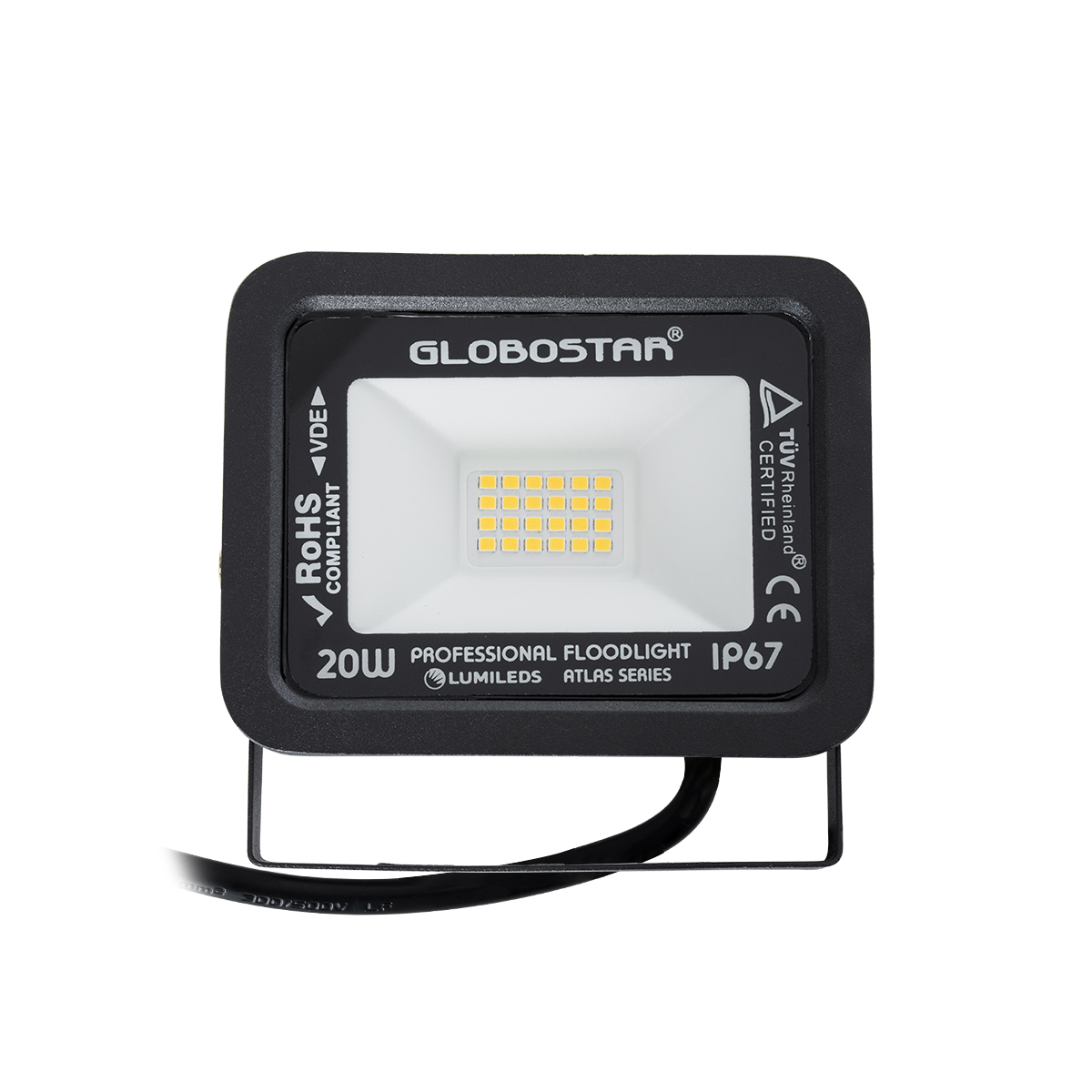 GLOBOSTAR® ATLAS 61412 Προβολέας LED 20W 2300lm 120° AC 220-240V Αδιάβροχο IP67 Θερμό Λευκό Ματ 2700K – Lumileds SMD Chip – TÜV Rheinland Certified – Μαύρο Ματ – Μ12 x Π2.5 x Υ9.5cm – 5 Χρόνια Εγγύηση