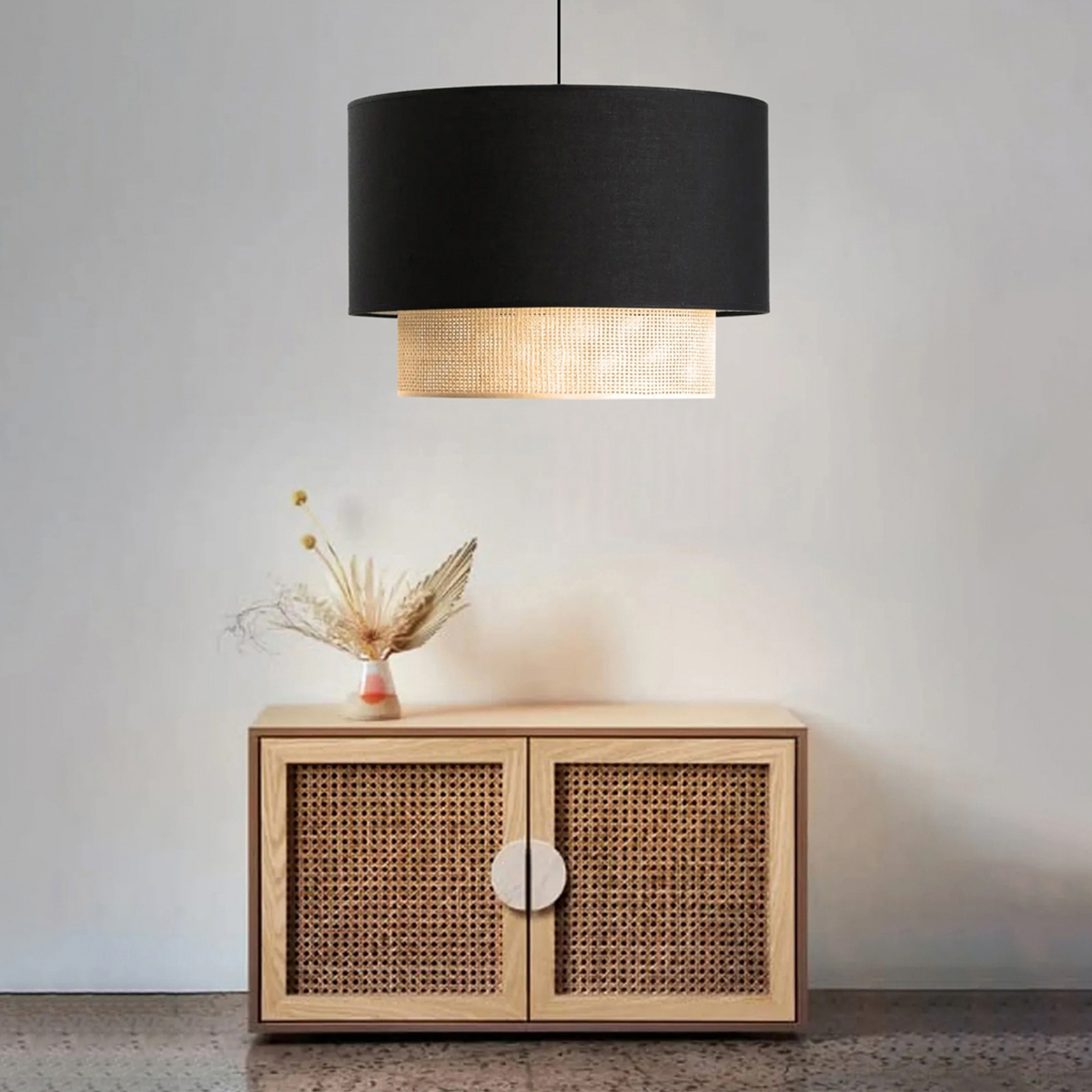 GLOBOSTAR® BIGGIE 204-0098 Μοντέρνο Κρεμαστό Φωτιστικό Οροφής με Ντουί 1 x E27 AC 220-240V IP20 – Μαύρο & Μπεζ – Μ30 x Π30 x Υ23,5cm