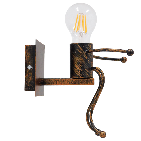 GLOBOSTAR® LITTLE MAN 01592 Μοντέρνο Φωτιστικό Τοίχου – Απλίκα με Ντουί 1 x E27 AC 220-240V IP20 – Χάλκινο – Μ12 x Π19 x Υ17cm