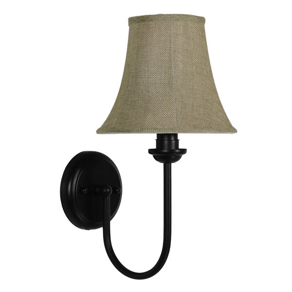 GloboStar® SHELLY 01299 Vintage Φωτιστικό Τοίχου Απλίκα Μονόφωτο Μαύρο Μεταλλικό με Υφασμάτινο Μπεζ Καπέλο Φ20 x Μ18 x Π13 x Υ34cm