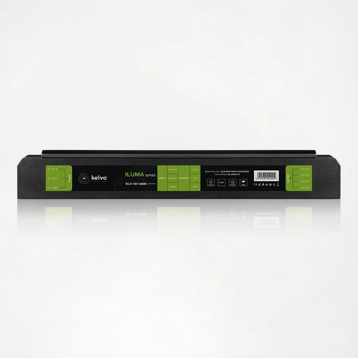 kelvo® ILUMA KLV-107-0009 Slim Τροφοδοτικό/Μετασχηματιστής Class I PELV 200W 16.5A AC 220-240V σε DC 12V IP20 – Γκρι Ανθρακί Ματ – Μ18.5 x Π5.9 x Υ2.8cm – 5 Χρόνια Εγγύηση