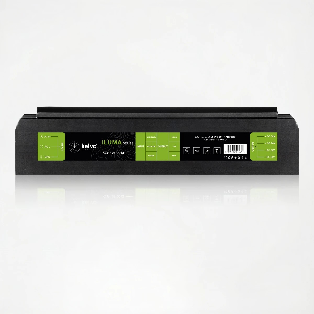 kelvo® ILUMA KLV-107-0013 Slim Τροφοδοτικό/Μετασχηματιστής Class I PELV 100W 4.1A AC 220-240V σε DC 24V IP20 – Γκρι Ανθρακί Ματ – Μ16 x Π4.8 x Υ2.8cm – 5 Χρόνια Εγγύηση