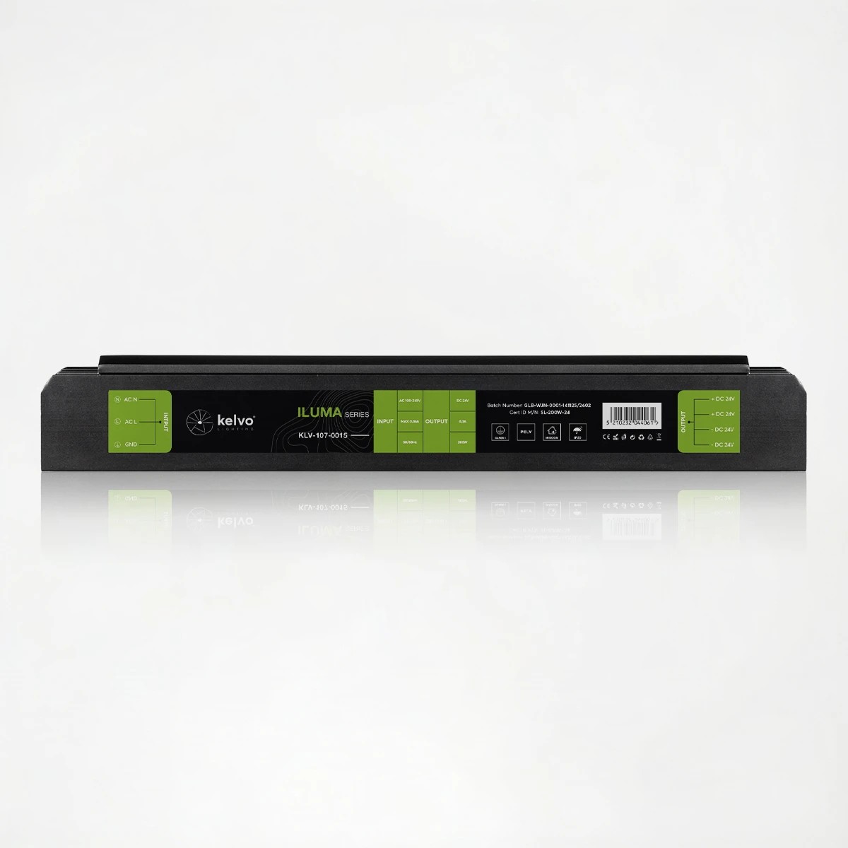 kelvo® ILUMA KLV-107-0015 Slim Τροφοδοτικό/Μετασχηματιστής Class I PELV 200W 8.3A AC 220-240V σε DC 24V IP20 – Γκρι Ανθρακί Ματ – Μ18.5 x Π5.9 x Υ2.8cm – 5 Χρόνια Εγγύηση