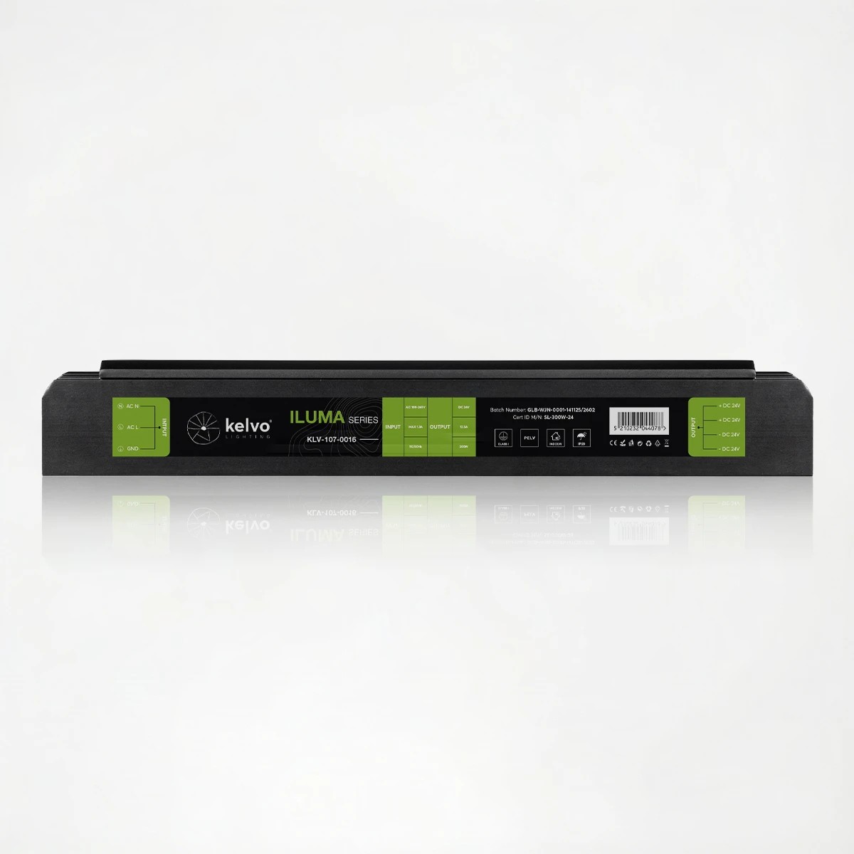kelvo® ILUMA KLV-107-0016 Slim Τροφοδοτικό/Μετασχηματιστής Class I PELV 300W 12.5A AC 220-240V σε DC 24V IP20 – Γκρι Ανθρακί Ματ – Μ19.6 x Π5.9 x Υ2.8cm – 5 Χρόνια Εγγύηση