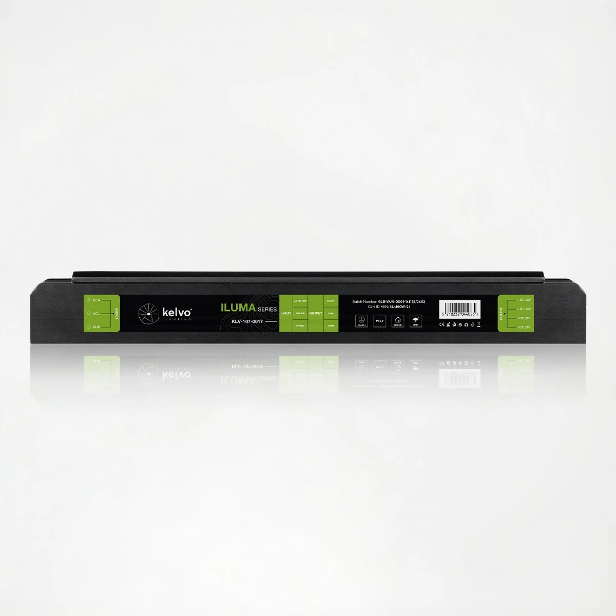 kelvo® ILUMA KLV-107-0017 Slim Τροφοδοτικό/Μετασχηματιστής Class I PELV 400W 16.6A AC 220-240V σε DC 24V IP20 – Γκρι Ανθρακί Ματ – Μ22.3 x Π5.9 x Υ2.8cm – 5 Χρόνια Εγγύηση