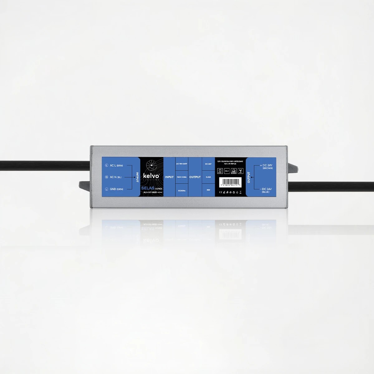 kelvo® SELAS KLV-107-0028 Τροφοδοτικό/Μετασχηματιστής Class II SELV 15W 0.63A AC 220-240V σε DC 24V Αδιάβροχο IP67 – Γκρι Ανθρακί Ματ – Μ11 x Π3 x Υ2cm – 5 Χρόνια Εγγύηση