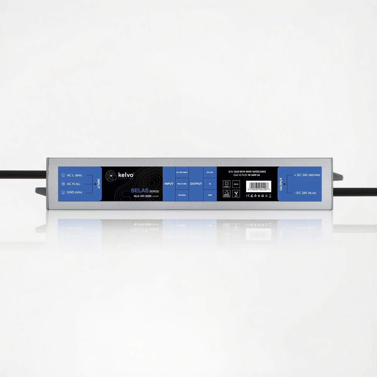 kelvo® SELAS KLV-107-0029 Τροφοδοτικό/Μετασχηματιστής Class II SELV 24W 1A AC 220-240V σε DC 24V Αδιάβροχο IP67 – Γκρι Ανθρακί Ματ – Μ18.2 x Π3 x Υ2.2cm – 5 Χρόνια Εγγύηση