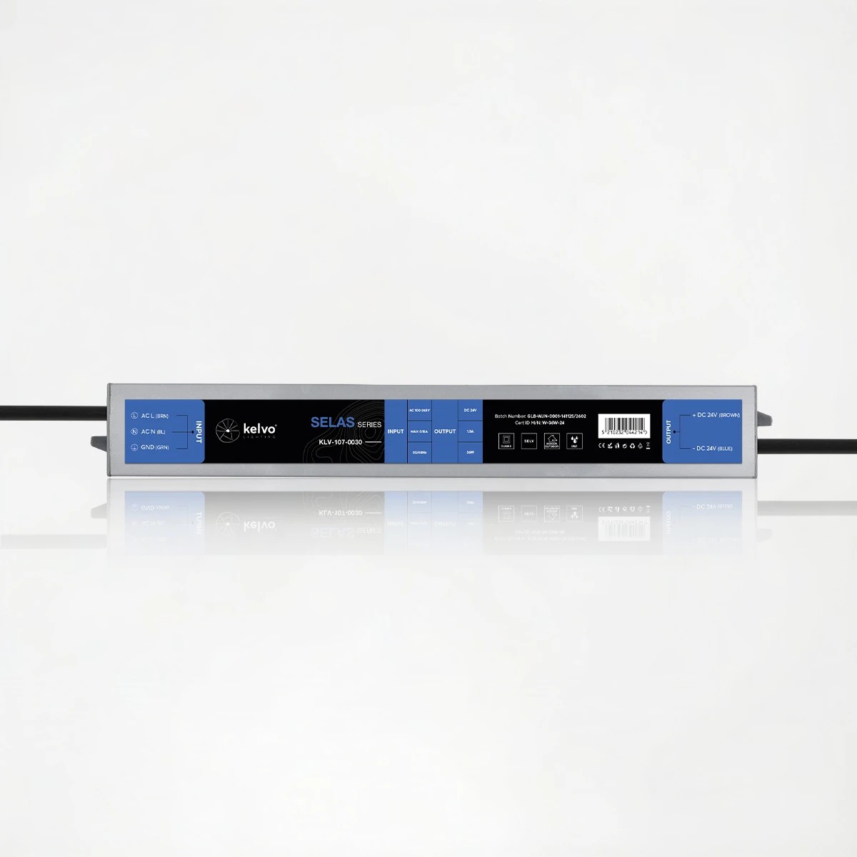 kelvo® SELAS KLV-107-0030 Τροφοδοτικό/Μετασχηματιστής Class II SELV 36W 1.5A AC 220-240V σε DC 24V Αδιάβροχο IP67 – Γκρι Ανθρακί Ματ – Μ22 x Π3 x Υ2cm – 5 Χρόνια Εγγύηση