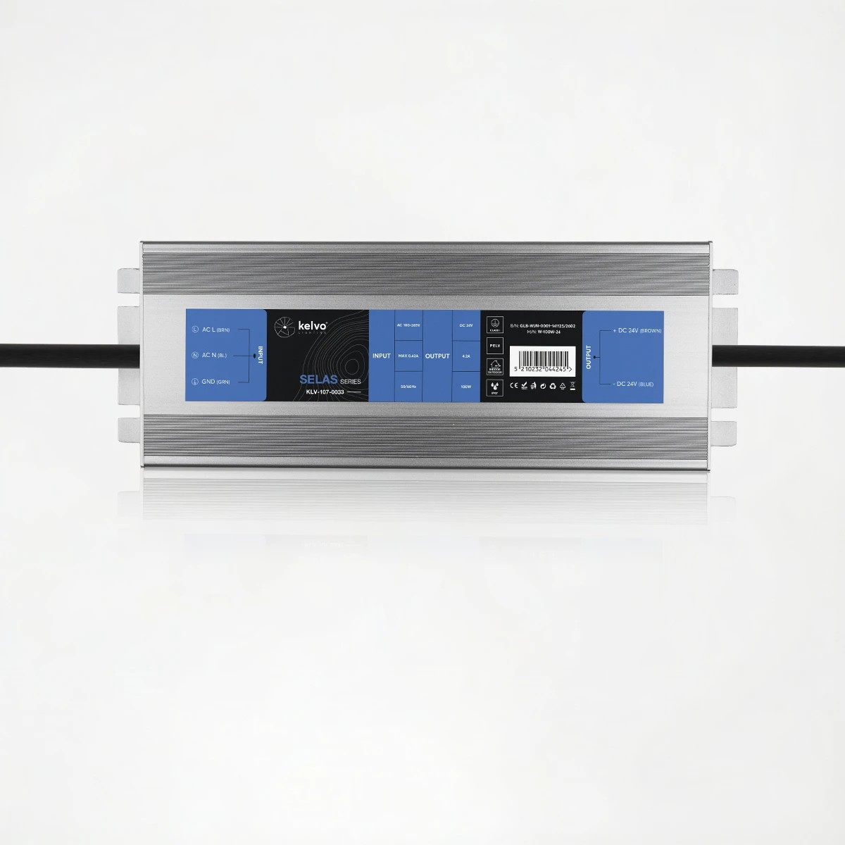 kelvo® SELAS KLV-107-0033 Τροφοδοτικό/Μετασχηματιστής Class I PELV 100W 4.2A AC 220-240V σε DC 24V Αδιάβροχο IP67 – Γκρι Ανθρακί Ματ – Μ18.9 x Π6.5 x Υ2.2cm – 5 Χρόνια Εγγύηση